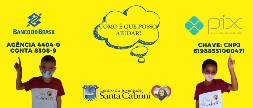 Para realizar doações, entre em contato com o Centro da Juventude Santa Cabrini pelo telefone (86) 98875-5027 ou pelo e-mail cjscabrini@hotmail.com. Você também pode fazer sua transferência bancária via conta do Banco do Brasil ou PIX, conforme a imagem acima.